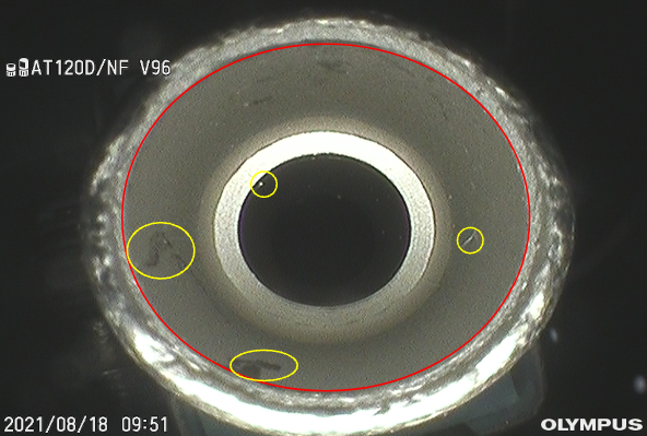 自動加壓過程中,相機移動中藉由AI偵測氣泡的出現,氣泡可以小至0.05mm左右
